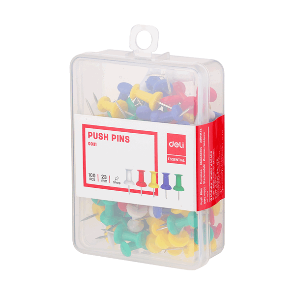 Pack of 35 Pcs Add color and organization to your workspace with this pack of 35 Colored Push Pins. Designed for both functionality and visual appeal, these sturdy pins are perfect for pinning notes, reminders, photos, calendars, and documents to corkboards, bulletin boards, and soft walls. Each push pin features a sharp steel point for easy insertion and a durable plastic head for safe and comfortable handling. The assorted vibrant colors not only help you stay organized but also make your board look more engaging and lively?perfect for offices, classrooms, homes, or creative studios. Key Features: Pack of 35 Push Pins ? Comes in assorted bright colors for easy organization. Durable & Reusable ? Made with strong steel tips and sturdy plastic heads. Multi-Purpose Use ? Ideal for pinning notes, photos, reminders, and decorations. Easy to Use Sharp tips for smooth insertion and easy removal without damage. Perfect for Any Space ? Great for bulletin boards, corkboards, walls, maps, and more.